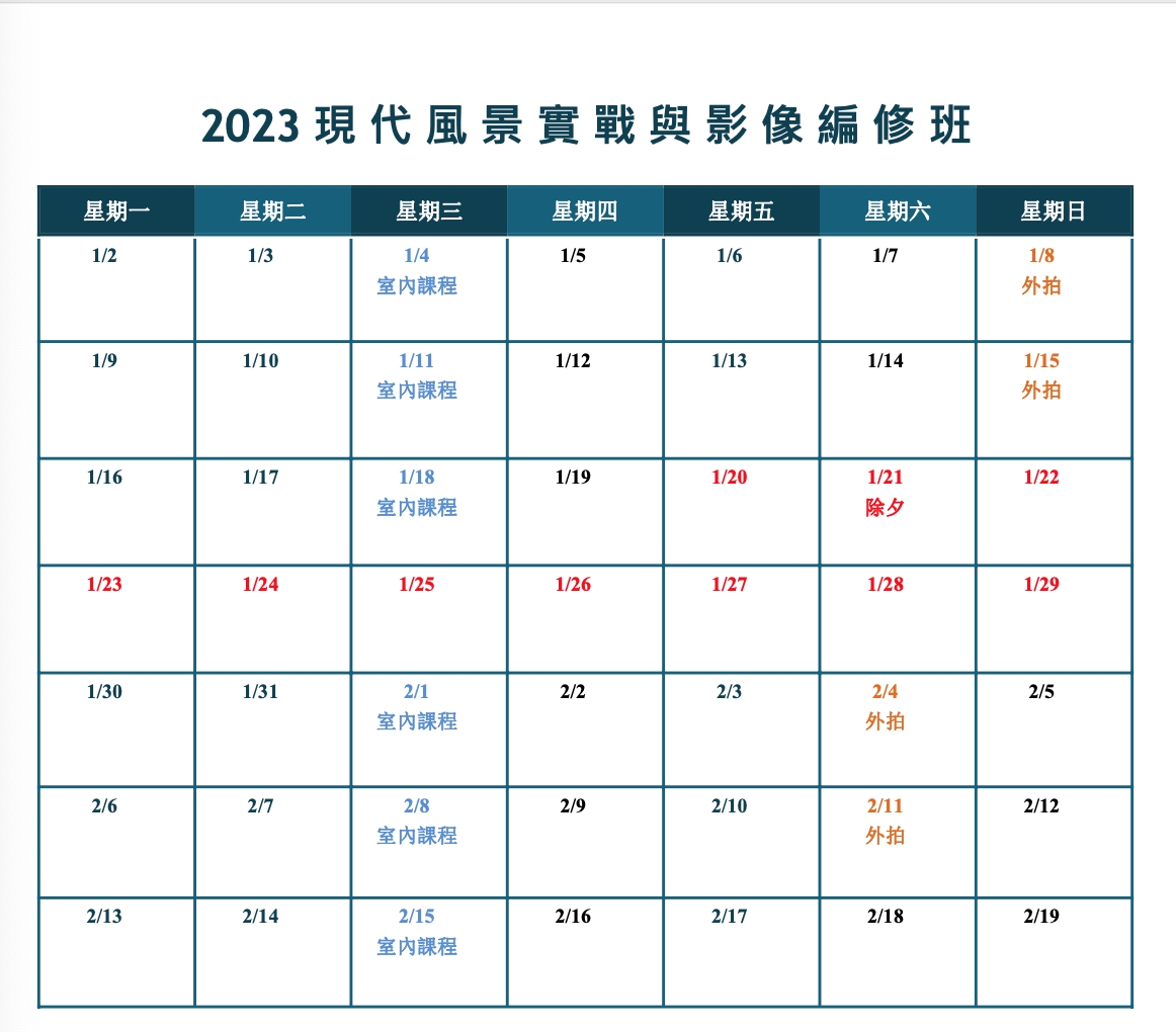 | 3. 每堂外拍課時間依現場狀況而定,共計四堂外拍課 | |