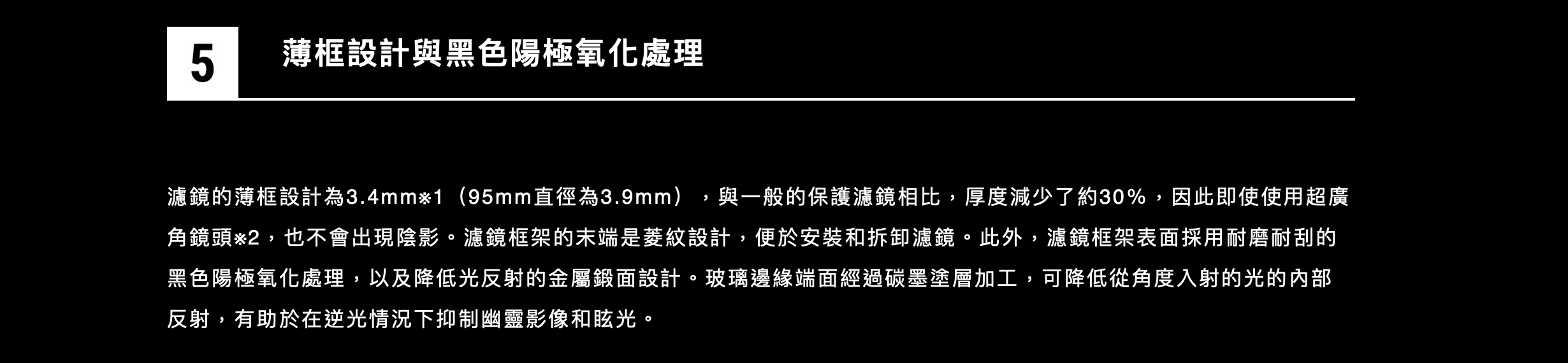 ARCREST II 保護濾鏡專為您的鏡頭精心打造。這款高性能保護濾鏡在日本製造,添加超低反射率的「Zero-One 防反射塗層」,並採用具備強效防水和防油脂的知名光學 NIKKOR 鏡片製成。 濾鏡表面設有防靜電塗層設計,可有效減少灰塵和污跡附於表面,清潔和使用更方便。ARCREST II 保護濾鏡 95mm 適合濾鏡接口大小尺寸為 95mm 的鏡頭。